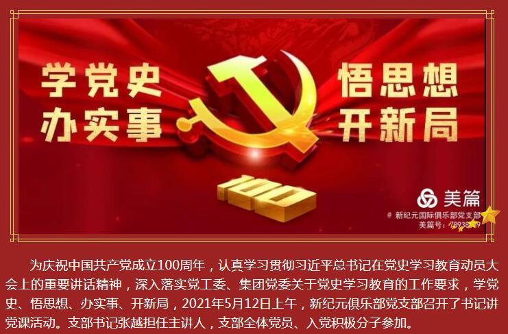 黨史學習(xí)正當時(shí)|新紀元俱樂(yuè)部黨史學習(xí)教育書(shū)記講黨®£π♦課精彩開(kāi)講!